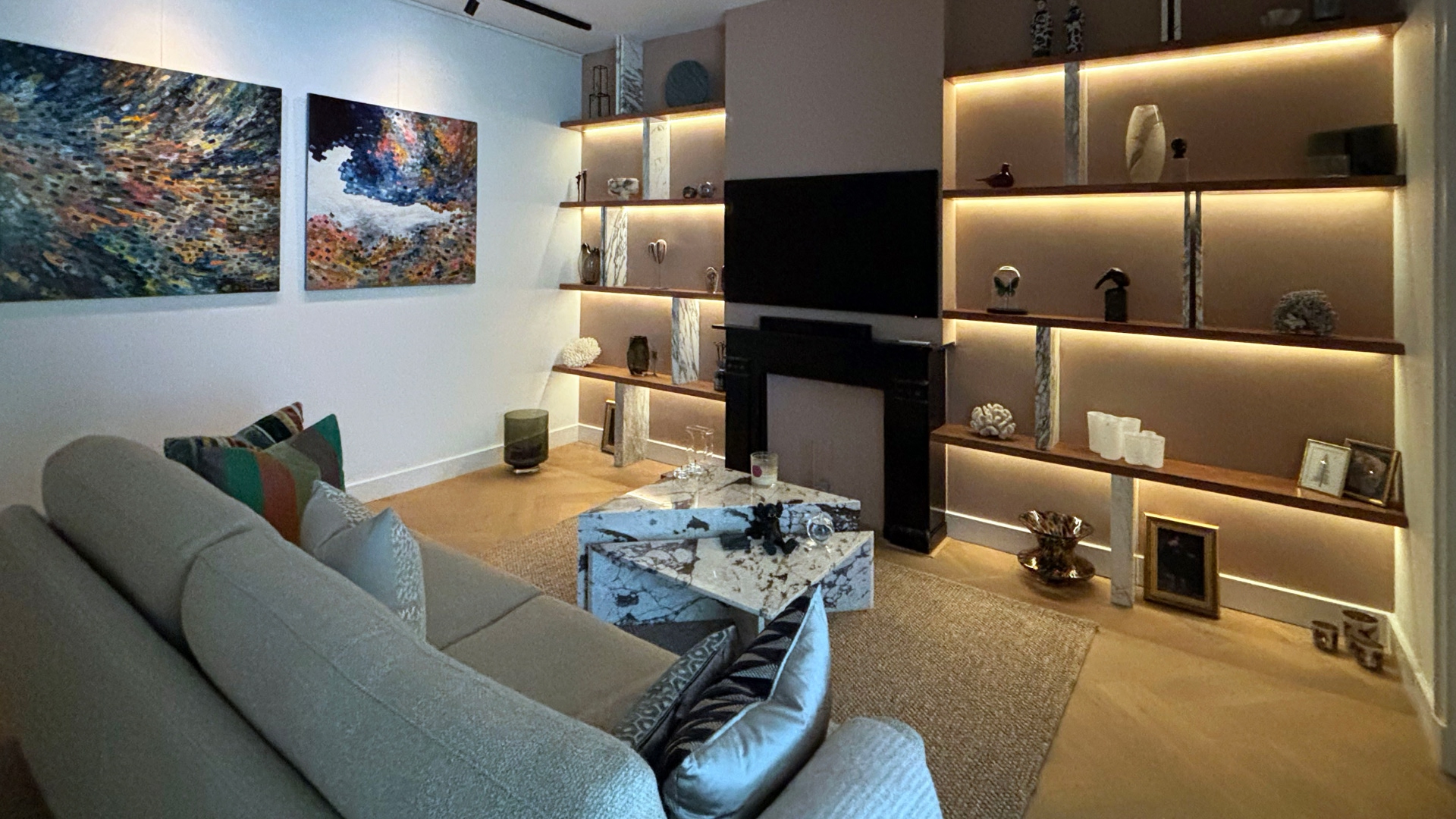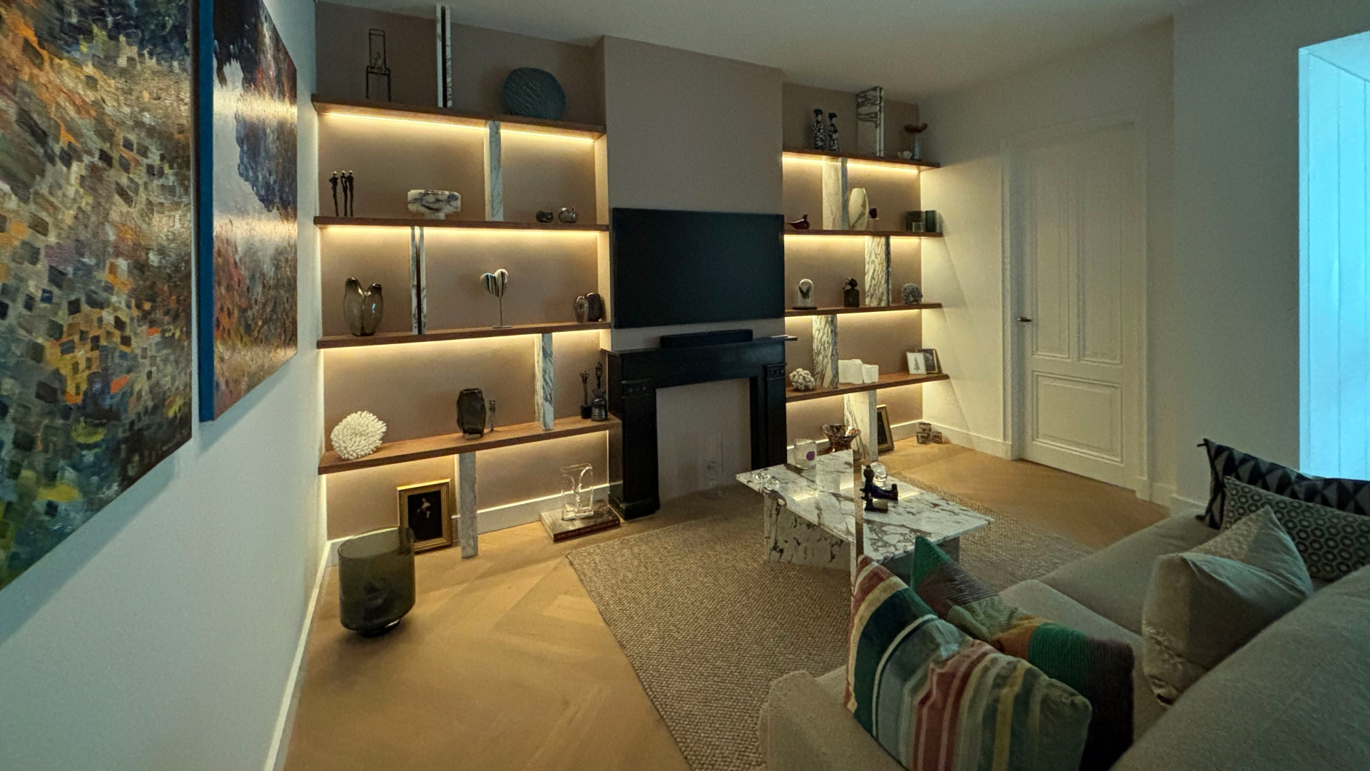 Voor dit project in Amsterdam hebben wij de woning volledig opgeknapt. De woning is opnieuw geschilderd en voorzien van een maatwerk wandafwerking met eikenhouten planken. Hierdoor heeft het interieur een chique en tegelijkertijd warme uitstraling gekregen. Daarnaast hebben wij een op maat gemaakte kledingkast gerealiseerd, passend bij de stijl van de woning.
